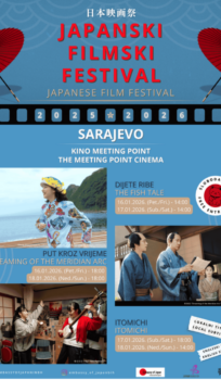 The program is organized by the Embassy of Japan in Bosnia and Herzegovina, in cooperation with the Japan Foundation and Meeting Point Cinema. The films are screened with subtitles in thelocal languages and in English.